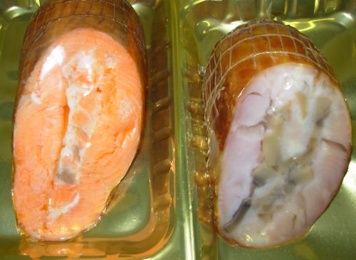 По разработанным рецептурам специалистами ФГУП «ВНИРО» изготовлены образцы формованной продукции, изучен их химический состав и определена энергетическая ценность. Органолептическая оценка изготовленной продукции показала, что образцы имели нежную, сочную консистенцию, при разрезе не крошащуюся, вкус и запах приятные, свойственные данному виду продукта, с легким ароматом копчения. Цвет фарша и кусочков рыбы, свойственные цвету вареной рыбы, используемой по рецептуре во всех образцах.
