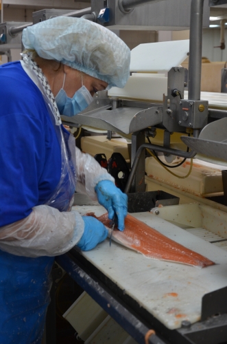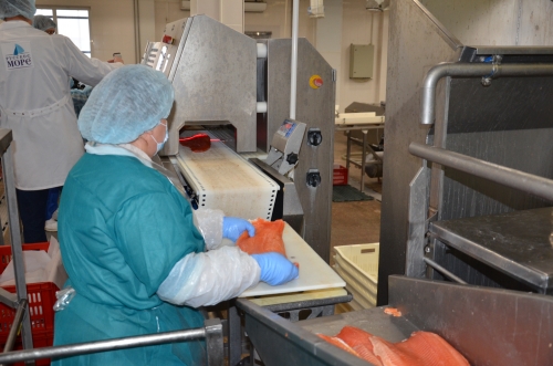 Автоматика, это хорошо, но есть операции, с которыми лучше справятся руки человека: удаление мелких грудных плавников, оставшихся косточек... К каждому рабочему столу подведена вода для обработки рук, инструмента и удаления ошметков рыбы.