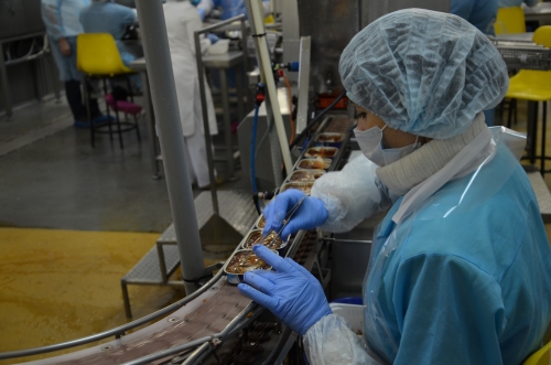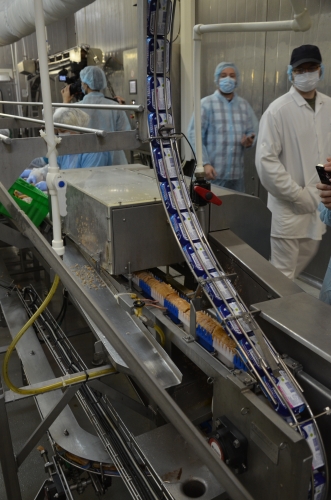 Далее мы познакомились с работой линии по производству пресервов из морепродуктов «Медитирана Бар». Вот где настоящая сложность и автоматизация! Чем меньше человек участвует в процессе, тем меньше вероятность привнести в продукт микробы и прочие нехорошести.